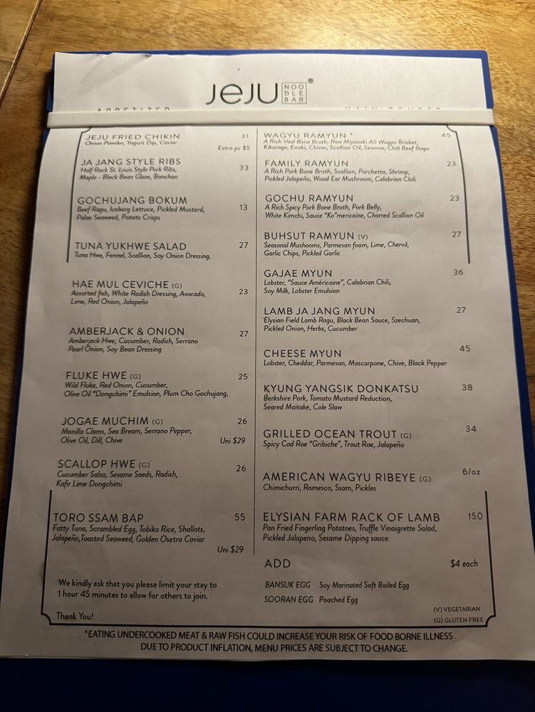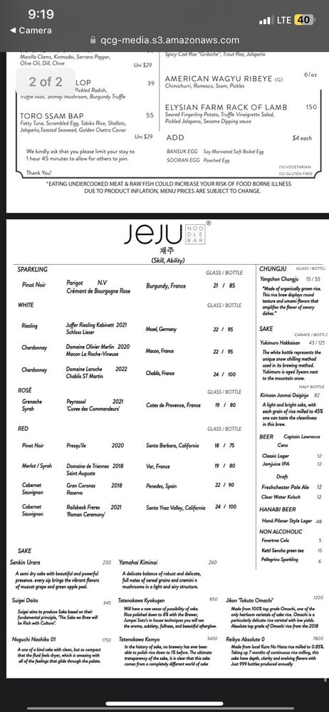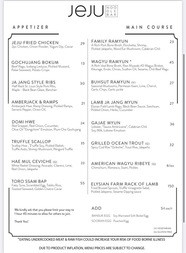 JeJu Noodle Bar is a trendy and intimate Asian-owned restaurant located in New York City's West Village. Known for its innovative and flavorful dishes, they offer a menu with a focus on raw fish and unique noodle creations. Customers rave about the toro ssam bap, which features generous portions of caviar and toro, as well as the ja jang style ribs and family ramyun. The restaurant also offers a variety of vegetarian options and has received high praise for its seafood dishes like the scallops and clams. Despite the challenge of securing a reservation, patrons agree that the exceptional food and cozy ambiance make it worth the wait. If you're looking for a Michelin-starred dining experience with a twist, JeJu Noodle Bar is a must-visit destination.
